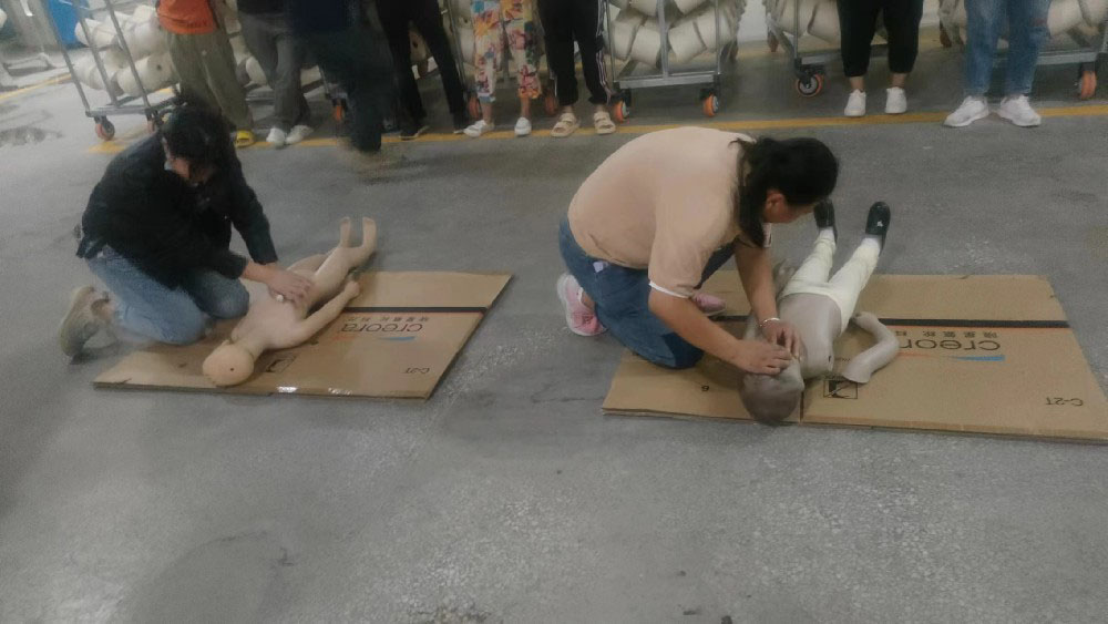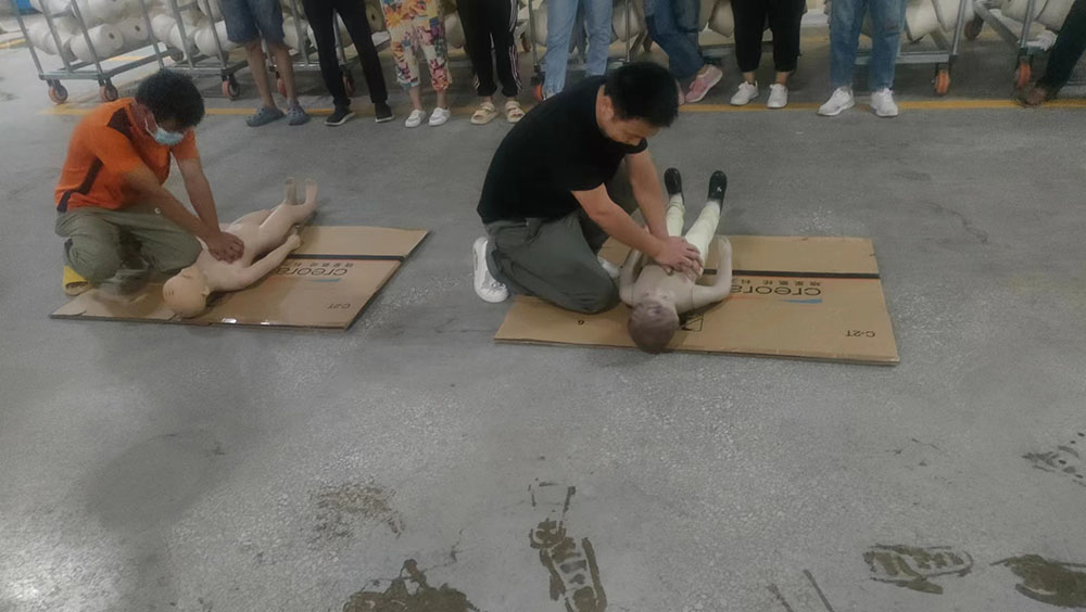 随后,公司组织员工进行了休克、昏迷紧急救护演练,呼吸心跳骤停紧急救护演练,所有员工参加了心肺复苏操作训练。