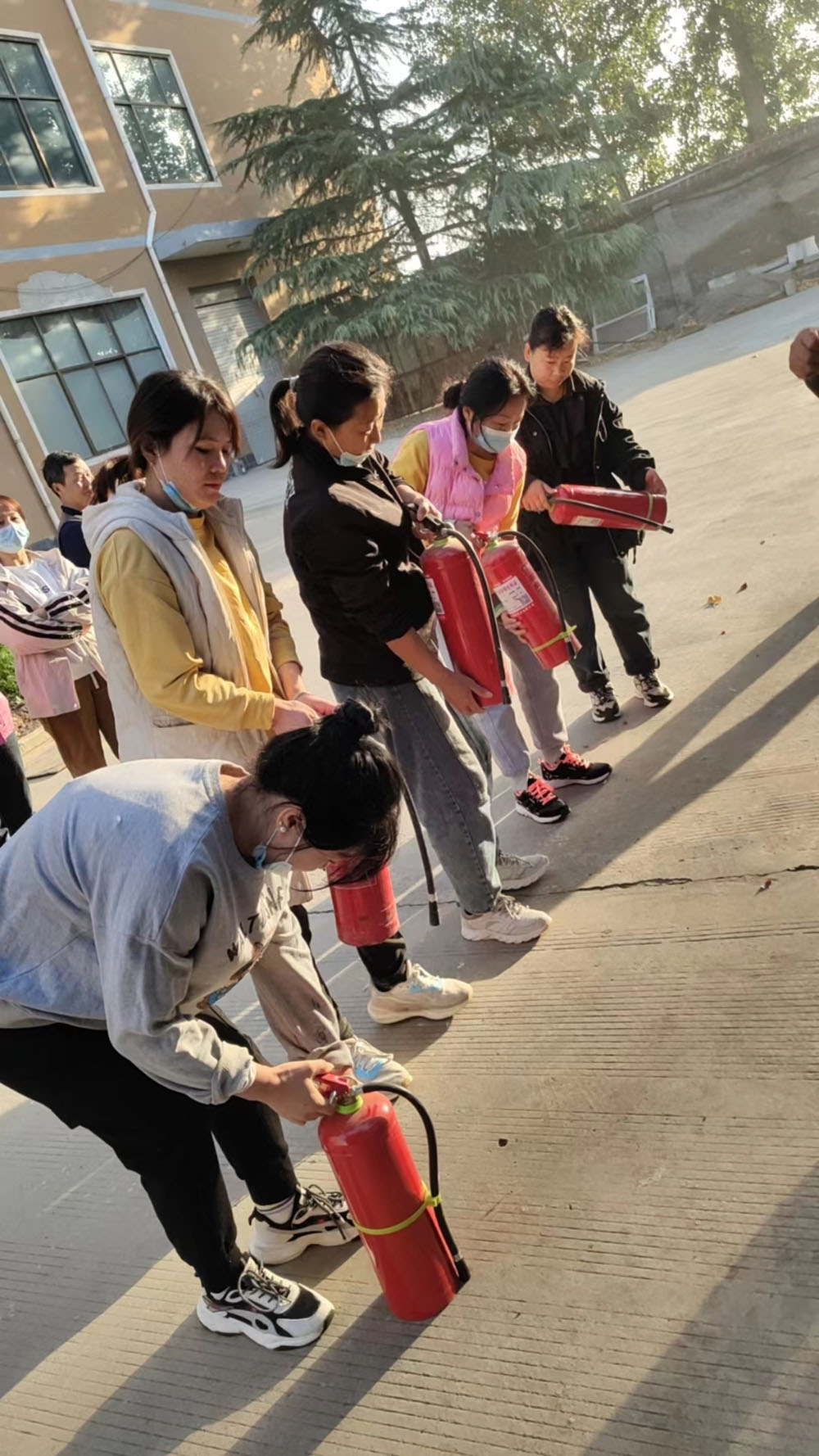 随后,公司组织员工开展了灭火器灭火实战演练,消防栓灭火实战演练,所有员工进行了实战操作训练。特别是对慌乱中容易出现问题的灭火器拔除保险销、消防栓枪头连接步骤进行了着重演练。